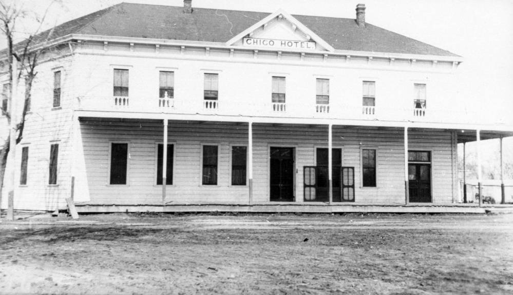 The first Chico Hotel was built in 1869, but the hotel burned down more than once. It was located at The Junction (where Broadway, Main, Park Ave., Humboldt Road, and 8th and 9th streets come together), and here it is in 1890.