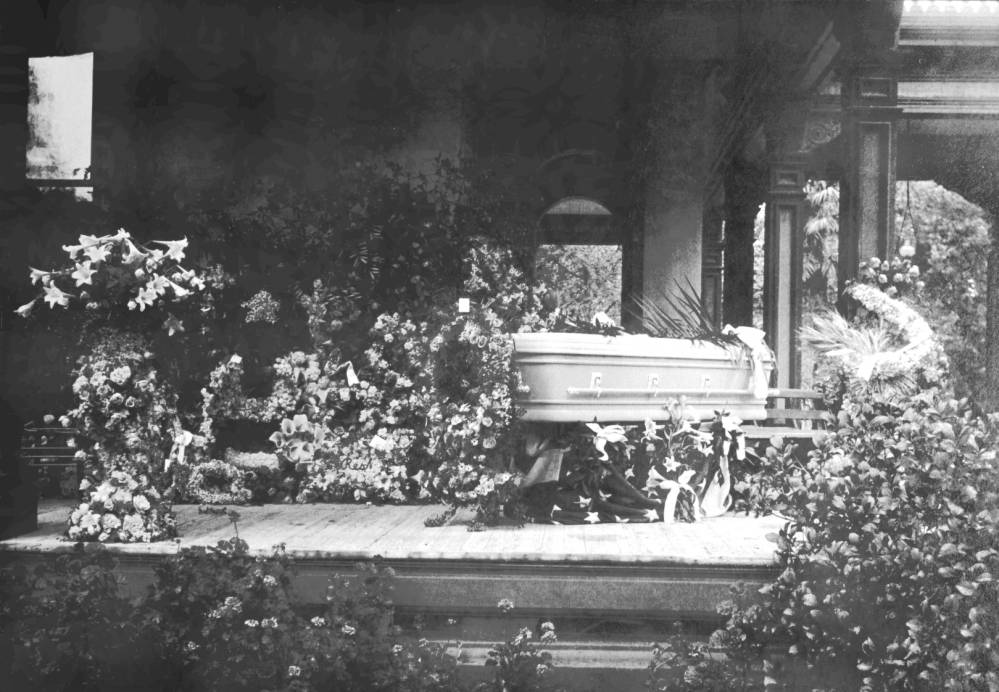 The funeral was delayed for a week until Annie’s sister and other relatives could arrive from the East Coast. On the day of the funeral the coffin was displayed on the Mansion porch, surrounded by floral tributes. In accordance with Annie’s wishes, and because of the crowds of people wishing to attend, the funeral was conducted from the porch of the Mansion. Businesses closed, children were let out of school, and classes at the Normal School were cancelled.