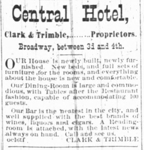 However, the Chico Hotel was one of the hotels in Chico which, according to Philip A. Bell, “refuse to admit a colored person within their doors.” He and his friends stayed at the Central Hotel, located on Broadway between 3rd and 4th streets. I don’t have a picture of it but here is their ad..