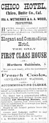 This ad for the Chico Hotel appeared in the same newspaper issue that published Pres’s poem. French cooks! Pretty classy.