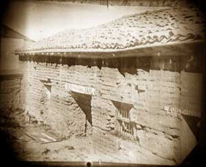 The jail would have looked a lot like this picture of the first jail in Monterey, made of adobe bricks and wood.