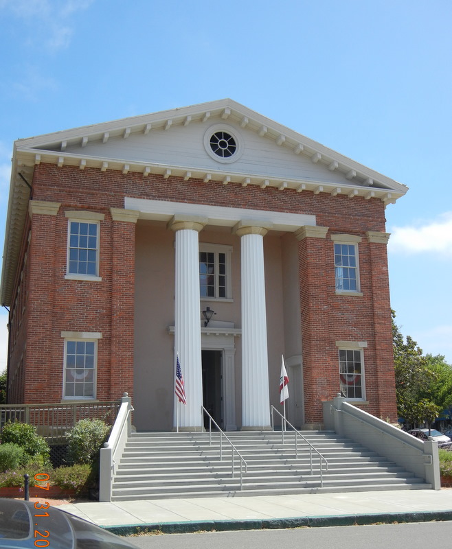 State Capitol in Benicia: For one year, 1853-54, Benicia (next door to Vallejo) was the state capital of California. It has a fine old two-story brick building, with two Grecian columns at the entrance, where the legislature met. The columns are made from the masts of ships abandoned at San Francisco during the Gold Rush. Bidwell would have known many of the members of the legislature, having served as a state senator himself in San Jose in 1849-1850.