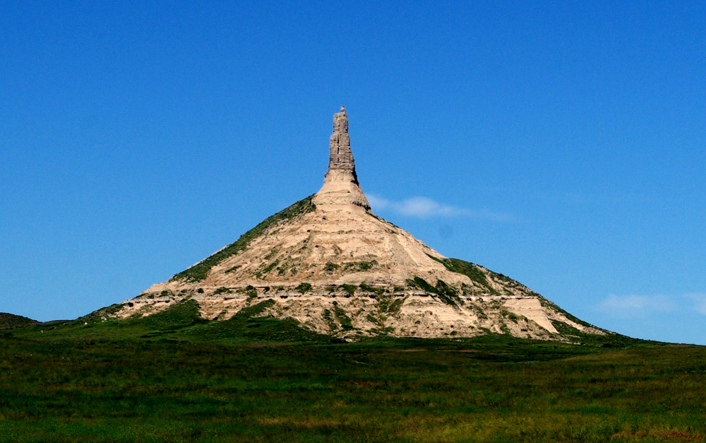 In 1841 John Bidwell was traveling across the “dull and monotonous” Great Plains when finally the landscape began to change. On June 17th the party spotted castle-like Courthouse Rock, and on the 18th they came to Chimney Rock, a landmark mentioned by nearly every emigrant who left a record: