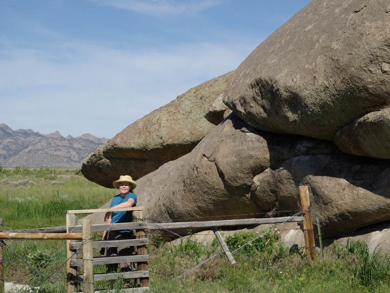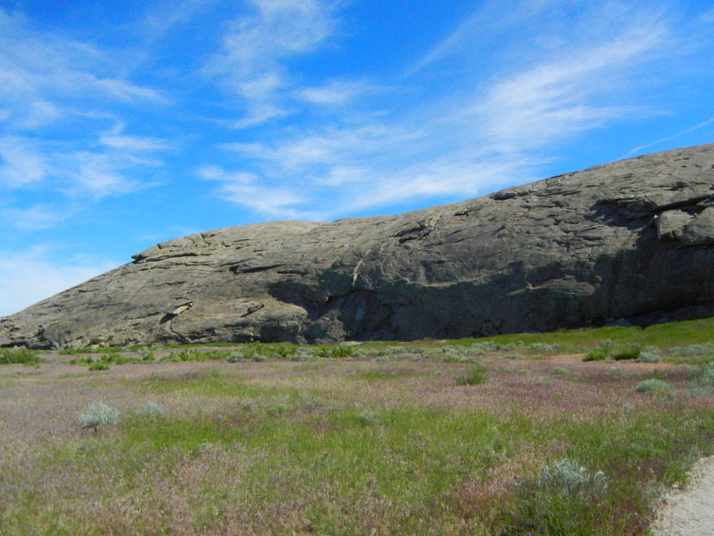 Today you can visit Independence Rock, walk the path around its base, even climb on it. (Watch out for mosquitoes–Wyoming mosquitoes are big and mean and I have the bites to prove it.) Hunt for names—the earliest I spotted was from 1890, but a careful search should turn up earlier ones. Many pioneers carved their names on the rock, but others only painted them with tar or grease, and those names have faded away.
