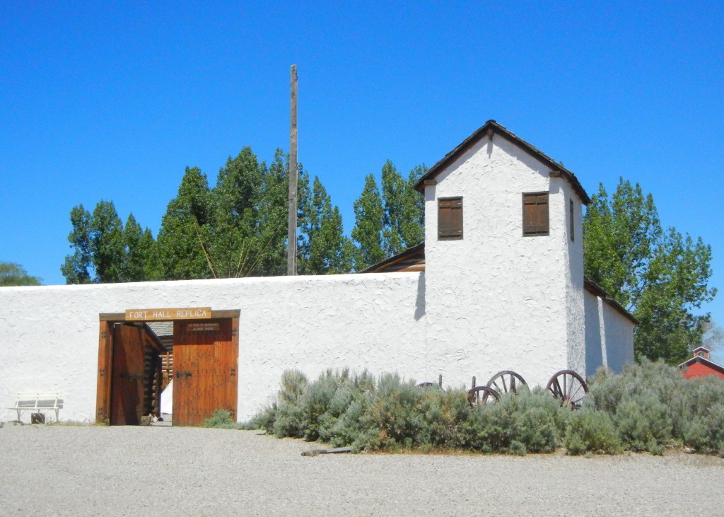 Henry Brolaski was one of four men who had gone to Fort Hall seeking provisions and a guide. Fort Hall was located near Pocatello, Idaho, about fifty miles northwest of where the two groups parted ways. Built in 1834, Fort Hall served as a trading post on the Snake River for fur tappers, Native Americans, and travelers on the Oregon Trail. The fort was demolished in 1863, but the current replica stands as a memorial to Fort Hall’s heritage. The photos below are from my visit there in 2014.