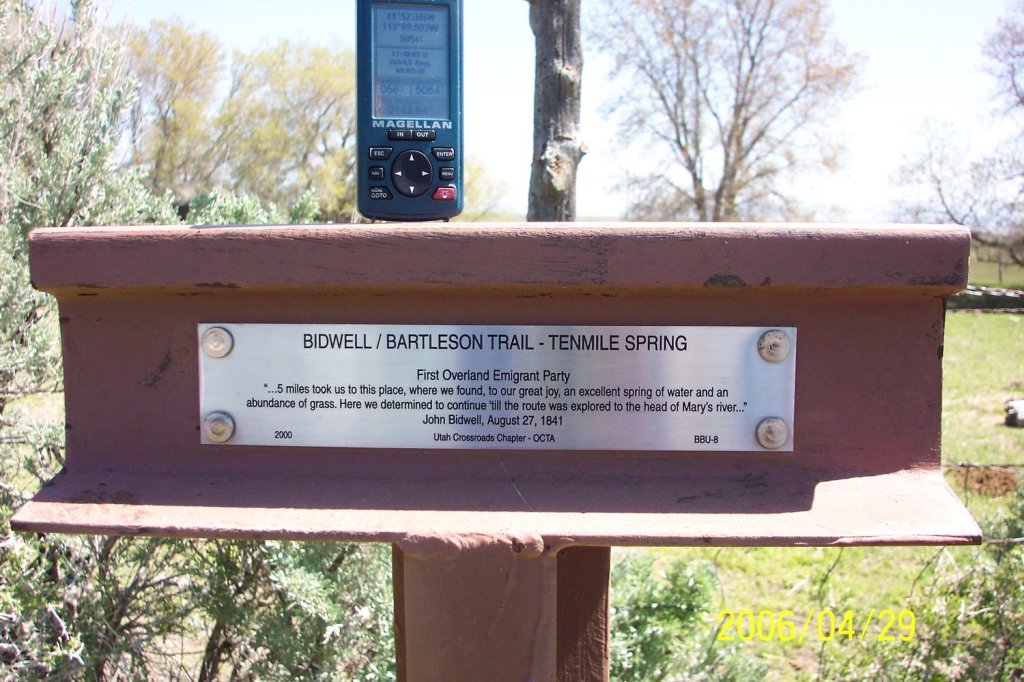 Tenmile Spring had plenty of water and grass. They would rest here for the next eight days. Today a trail marker with a quote from Bidwell’s journal marks the site.