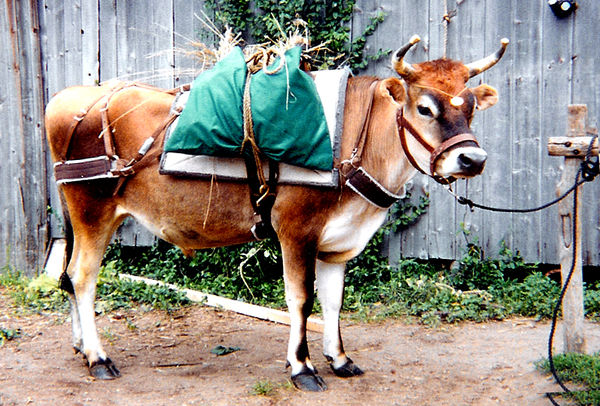 Bidwell only had oxen, no horse or mule, so he had the difficult task of getting packs onto his oxen. It was a scene both comic and desperate. Oxen are not trained to carry packs — I imagine that trying to get some kind of pack onto the back of an ox is not an easy thing. But Bidwell had no choice — his two oxen were all he had to carry his belongings, other than his own back. They were also his dinner on the hoof.
