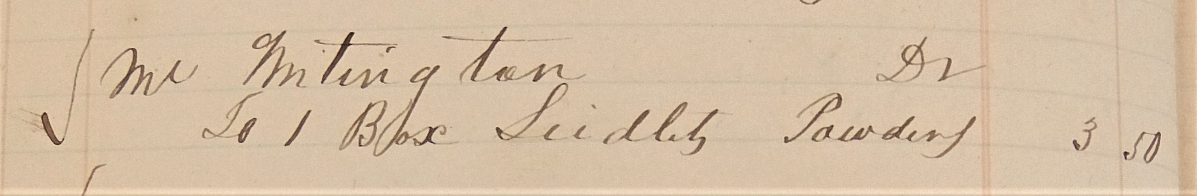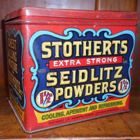 Seidlitz powders. This was a best-selling digestive treatment. The packet contained tartaric acid, potassium sodium tartrate, and bicarbonate of soda, which fizzed when mixed together in a glass of water. It was good for evacuating the bowels.