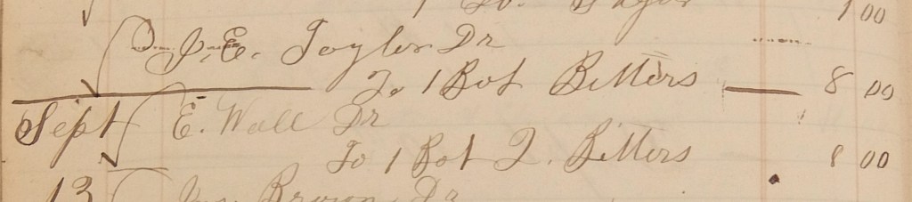 Bitters. A herbal remedy that was supposed to aid digestion. Ingredients varied; quinine, which has a strongly bitter flavor, was often included.