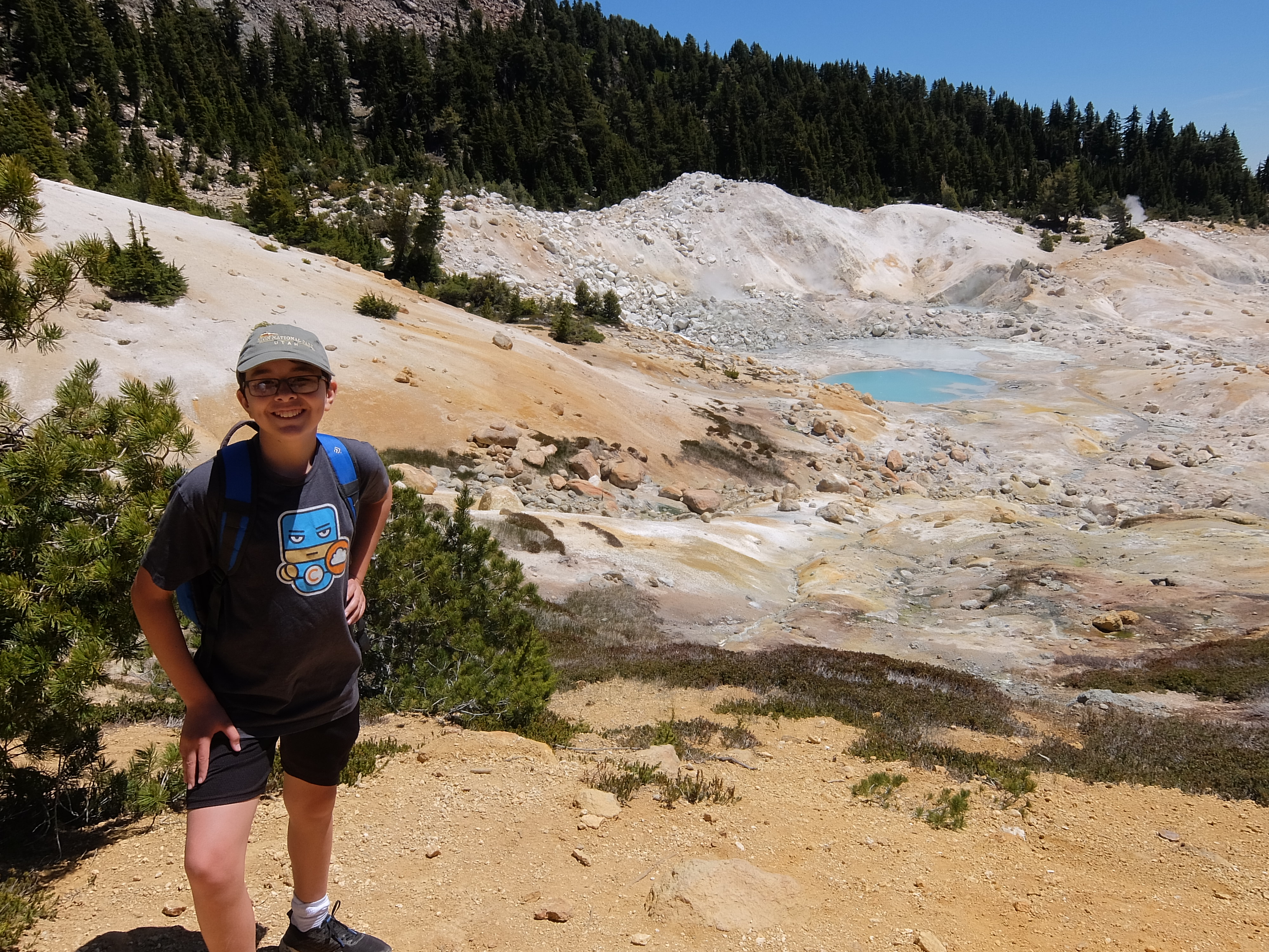 Bumpass Hell, that is, in Lassen National Volcanic Park. With grandchildren visiting from Wisconsin, and temperatures over 100 degrees in the valley, a trip to Hell turned out to be cooler than staying at home. The trail to Bumpass Hell is a 3-mile round trip, most of it pretty level, until the descent into the infernal regions.