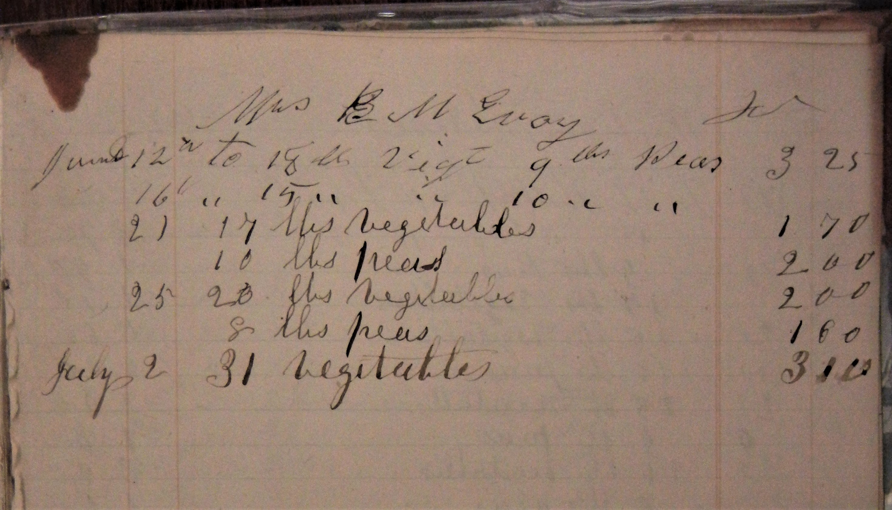 On June 11th, 1853 Mrs. Evoy wrote to Bidwell asking him to send her a basket of vegetables.