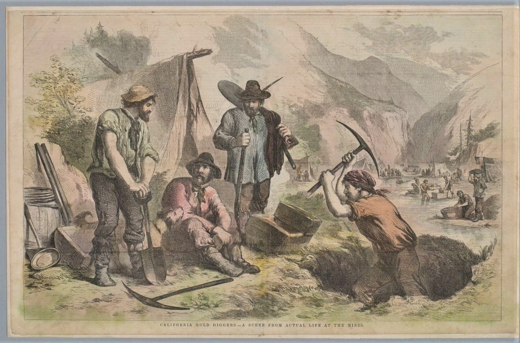 Three days later they camped near Downieville, “a mining village at the forks of the North Yuba.” One of the men came into camp saying, “I reckon somebody has struck it rich down there, and covered up their prospect hole so as to hide it.” Curiosity impelled investigation.