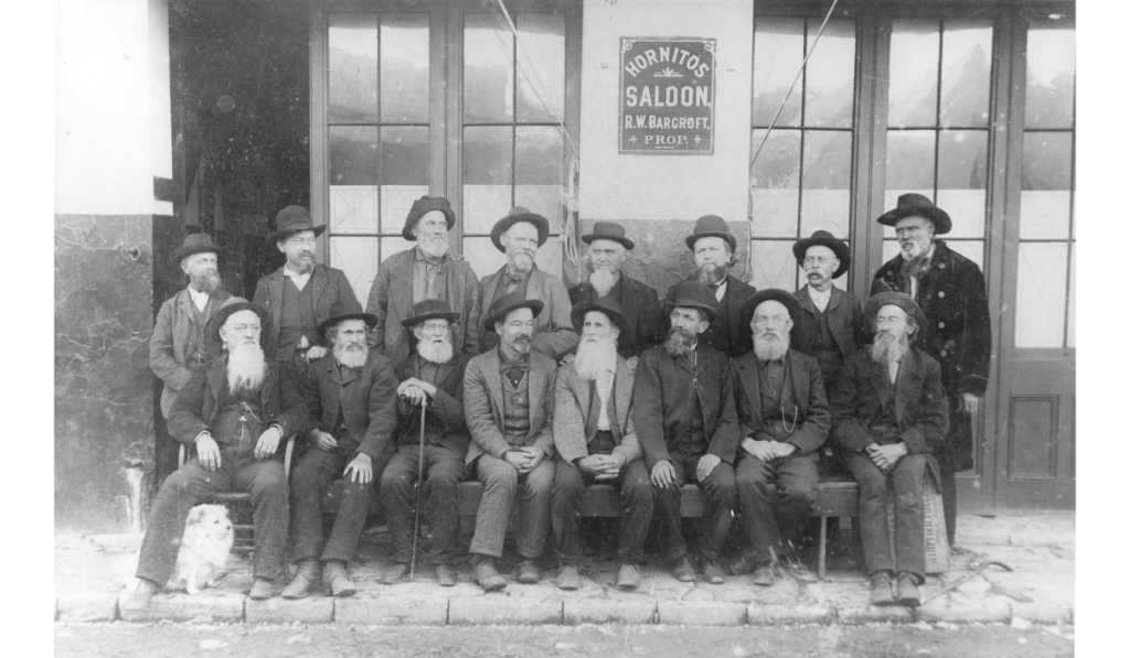 In the photograph below, Moses Rodgers is the tall man in the black coat on the far right. The photo of these “Hornitos old-timers” in front of the Hornitos Saloon was taken in 1890, when Moses would have been 55 years old.