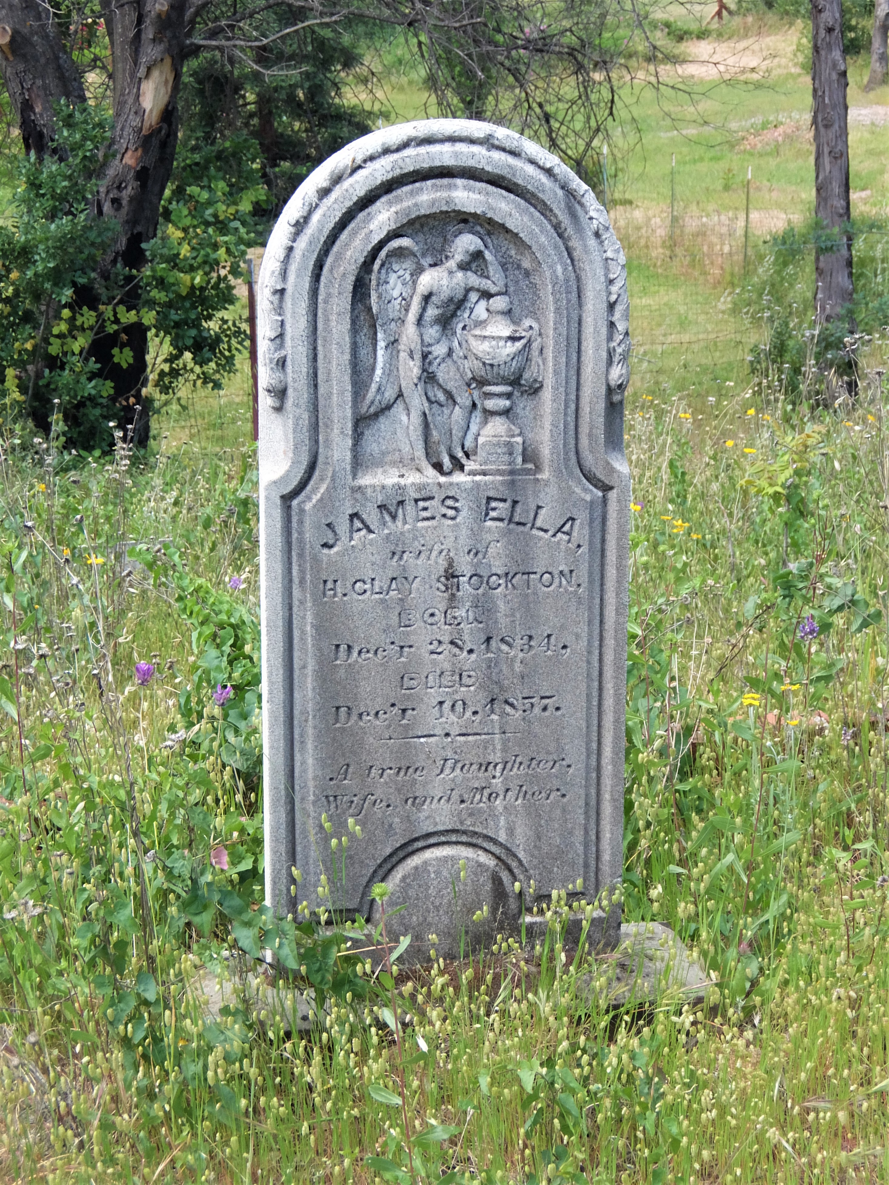 Here is the tombstone for James Ella Stockton, who died at the age of not-quite 24, after giving birth.