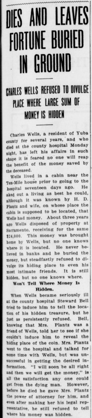 The most intriguing part of the article is where it says that he had $24,000 hidden on the property, money he received when he “disposed of property at Sacramento.” Was that really the source of his fortune, or was it money he had saved from his stage-robbing days?