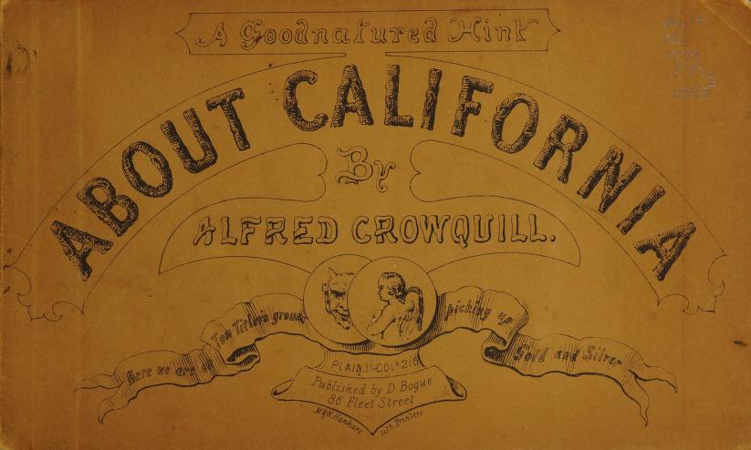 Alfred Crowquill was the pseudonym of British cartoonist Alfred Henry Forrester. In 1849 he capitalized on the gold mania by illustrating and publishing this little comic book. It tells the story of “Mivins,” a London clerk. “He reads of California! He dreams of California!” (and a rain of gold coins) and then leaves his mother and takes ship for the promised land.