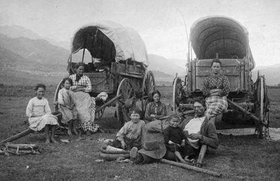 And just try to find a picture that fits this description! No woman would be caught dead having her photograph taken in that condition. Photos of women on the trail are exceedingly scarce. This picture of the Joseph Byington family is an oft-repeated one. Notice the barefoot children. What the women were wearing on their feet is hard to see. Their clothes look clean though, and I am sure this is the beginning of the trail and not the end.