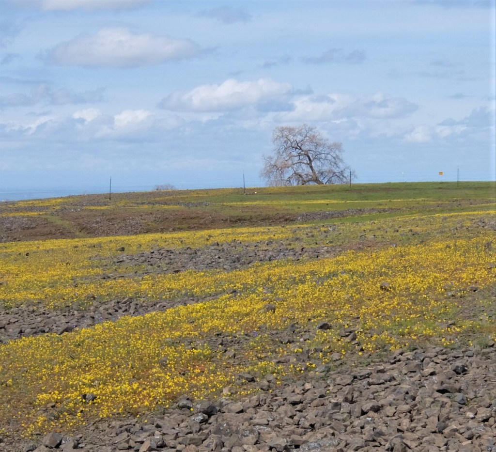 My daughter and two granddaughters went to Table Mountain two weeks ago and almost the only thing we saw was carpets of California goldfields. That’s mainly what we saw again today, but the lupine, bluedicks, popcorn flowers, and frying pans are beginning to show up.
