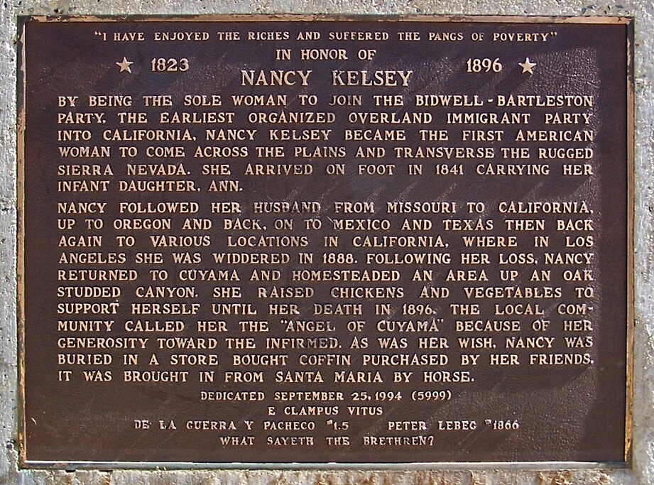Nancy Kelsey’s long and adventurous life came to an end on August 10th, 1896. She died and was buried at her last home in Cottonwood Canyon in the Cuyama Valley in Santa Barbara County, California. Her friend, Minnie Heath, later said: