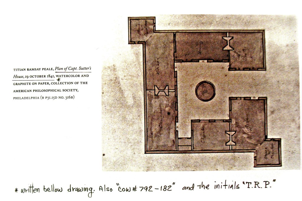 Titian Peale wrote in his journal that Sutter met the expedition and “conducted us to his house.” He says that Sutter “is now building extensive corrals and houses of adobes.” But nothing about a fort.