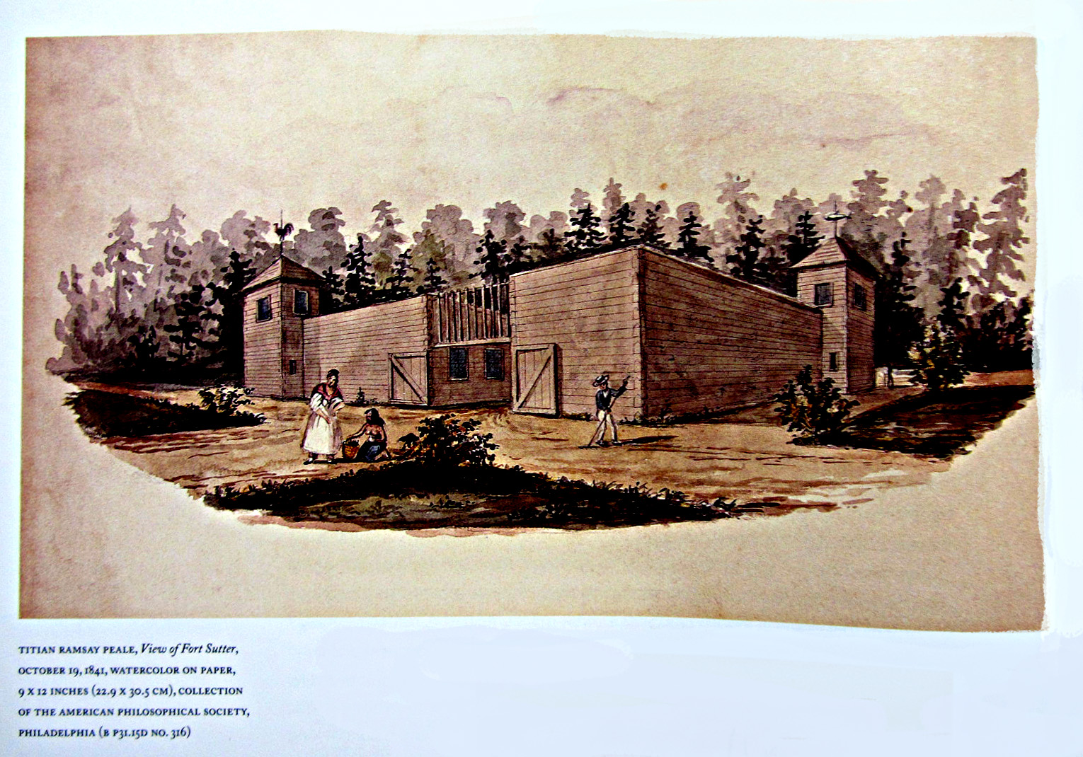 You can imagine Sutter, hospitable and expansive, telling his visitors about his grand plans to acquire Fort Ross and all its accoutrements, and then build a fort that would secure his position in the heart of California. Peale in response creates a picture of what that fort might look like, with its bastions that resemble those at Fort Ross. “Yes,” says Sutter, “that’s just what I need, except I will make it even bigger and better.” And so he did.