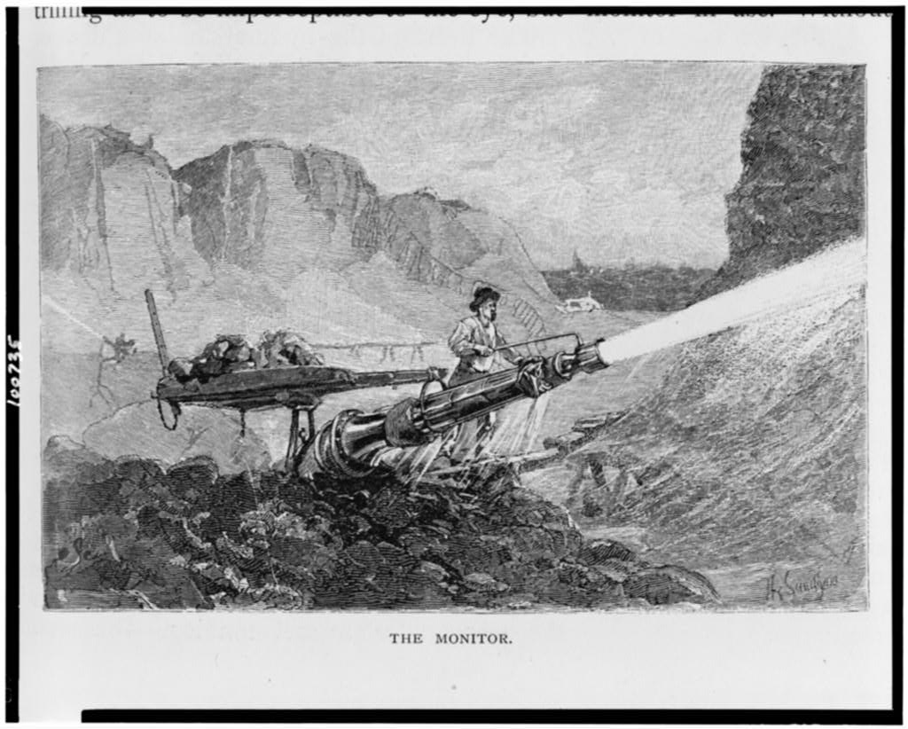 They only spent one day and night in Chico. The highlight of their day was a visit to the Spring Valley Mine in Cherokee, where gold was mined using powerful water cannons to wash down the gold-bearing ore from the hillside. General Sherman couldn’t resist trying his hand at this new kind of cannon, known as a monitor.