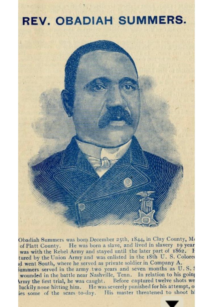 Summers was born a slave in Missouri in 1844. During the Civil War he was compelled to serve in the Confederate Army as a servant to a Confederate officer. He was captured by Union forces in 1862, and had no intention of returning to Missouri as a slave. He enlisted in the Union army on January 18th, 1864, in Wyandotte, Kansas and served as a private in Company A of the 18th Regiment of the United States Colored Troops.