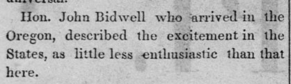 Bidwell himself never said much about his role in bringing California into the Union. But he reported that the other states (at least the Northern ones) celebrated the event almost as much as Californians themselves.
