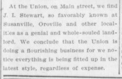 The Junction, where today Broadway and Main intersect with Park Avenue, Humboldt Avenue, and 8th and 9th Streets, was the center of transportation and commerce in Chico in the 19th century. That’s where you went to find livery stables, blacksmiths, saloons, and more hotels, like the Union House on Main.
