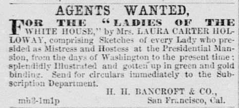 Other titles she sold were Ladies of the White House, The Life of Sumner (biographies were popular), and The Sights and Sensations of the National Capitol.