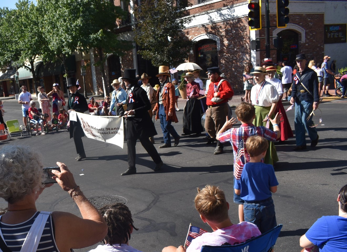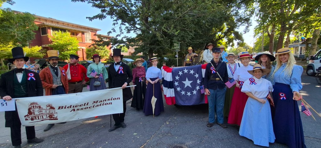 The Parade had singers, dancers, first responders, activists, volunteers from all kinds of great civic organizations, and us — keeping the legacy of Bidwell Mansion alive.