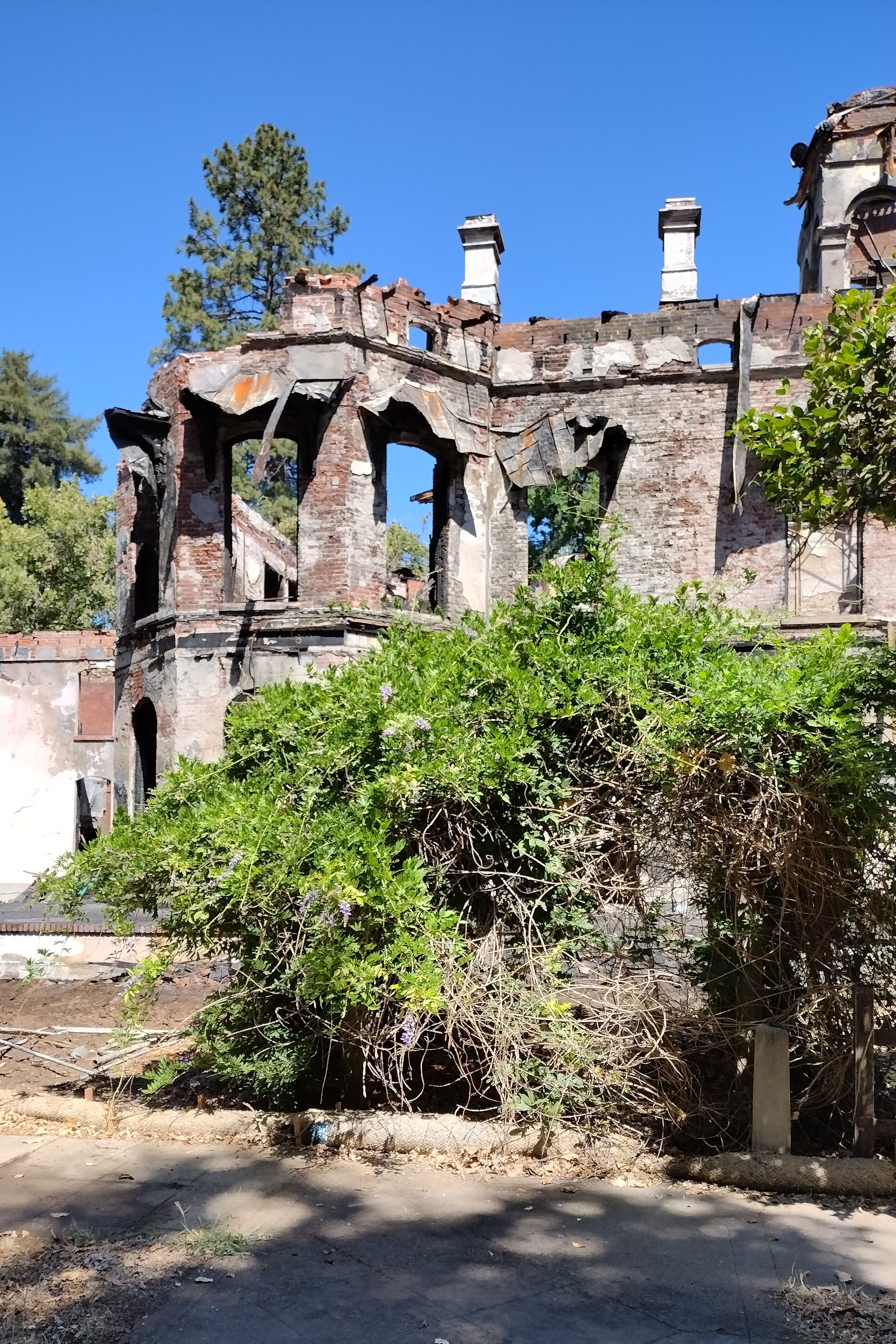 Crews have been at work cleaning up the exterior debris from the fire at Bidwell Mansion. With the scaffolding gone and the collapsed veranda cleared away, you can get a better look at the ruined structure. It’s a heart-breaking sight.