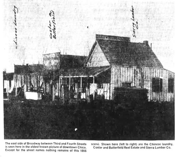 I borrowed the above photo from “Awesome People of Chico” on Facebook. I’m not sure where the original is, but it shows just what a rough-hewn town Chico was in the 1860s.