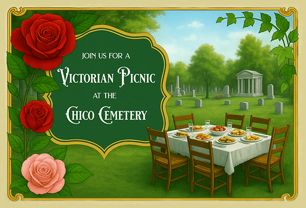 First up — the Bidwell Mansion Association Victorian Picnic at the Chico Cemetery.