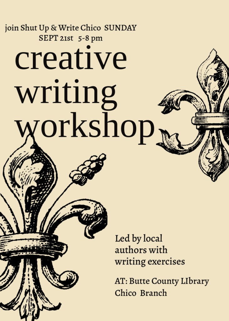 Next: Shut Up & Write: a Creative Writing Workshop. Sunday, September 21, 5-8 p.m.