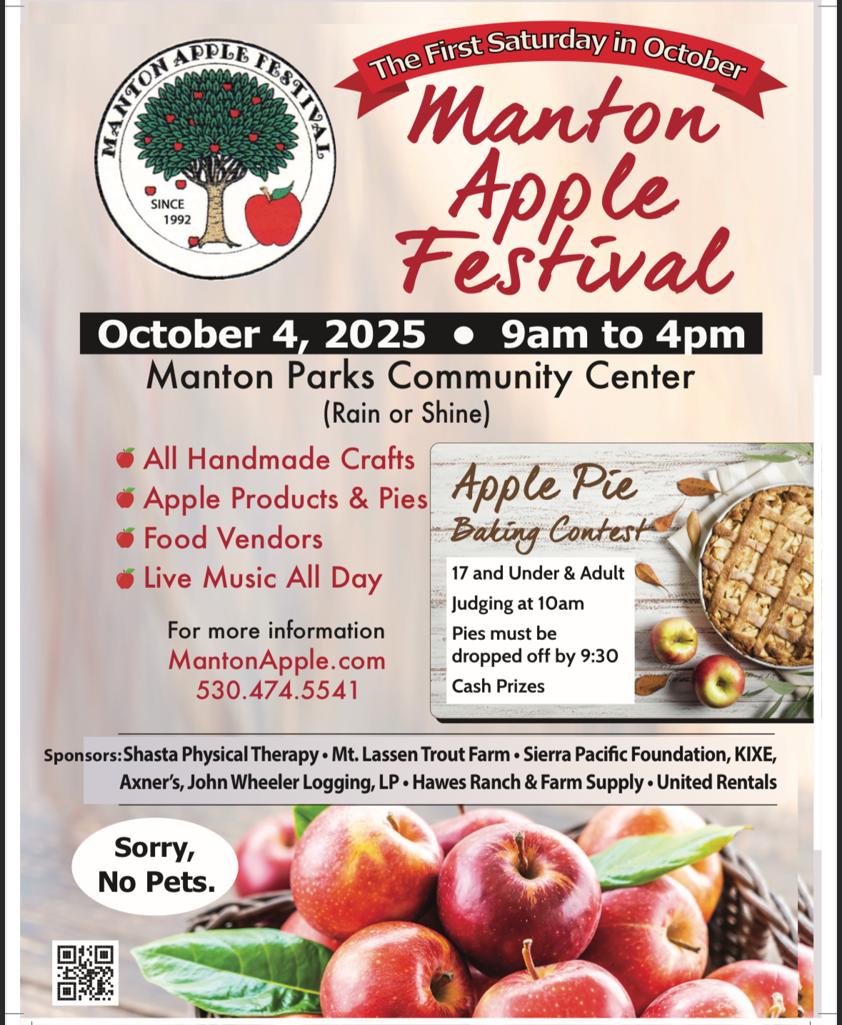 The Manton Apple Festival on Saturday, October 4th, 9-4.