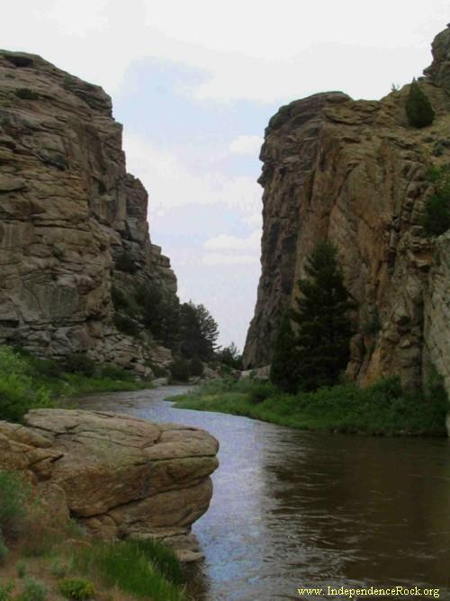 Travelers on the Oregon Trail often remarked on this unusual cut in the rock as they passed around it. Some would wade on foot or ride their horses through the Gate, just for the fun of it, while the wagons went around to the south.