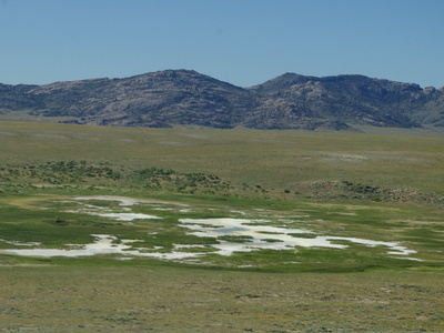 Wednesday, 7th. As we journeyed, the mountains were high and naked; passed a pond that was nearly dried up, perfectly white with Glauber Salts.