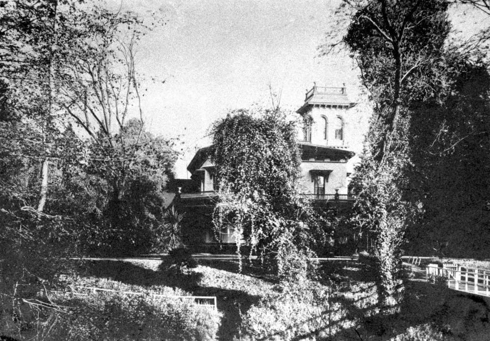 View of Bidwell Mansion about 1900, with footbridge on the right. CSUChico Special Collections sc14491